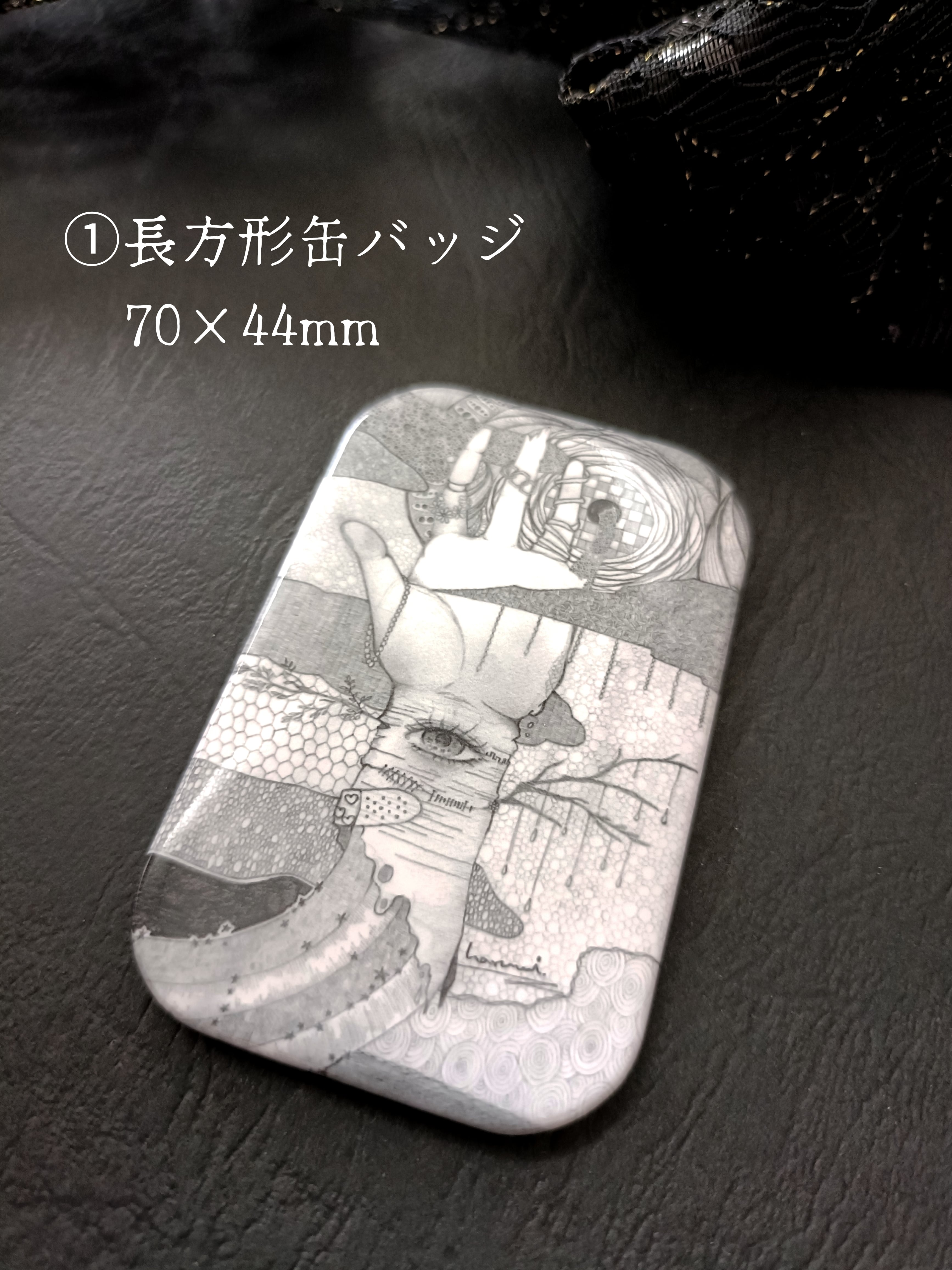 ① 長方形缶バッジ